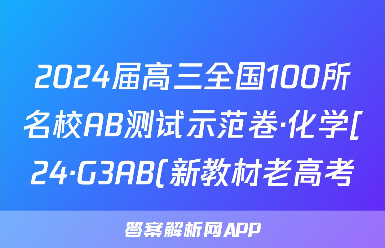 2024届高三全国100所名校AB测试示范卷·化学[24·G3AB(新教材老高考)·化学-SJB-必考-QG]三试题,目前2025-2026衡水金卷答案网已经汇总了2024届高三全国100所名校AB测试示范卷·化学[24·G3AB(新教材老高考)·化学-SJB-必考-QG]三试题的各科答案和试卷,获取更多{{papers_name}}答案解析,请在关注本站。
