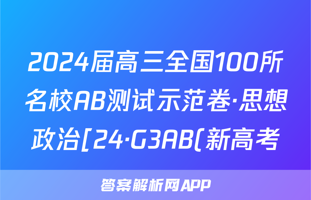 2024届高三全国100所名校AB测试示范卷·思想政治[24·G3AB(新高考)·思想政治-R-必考-QGB]八试题,目前2025-2026衡水金卷答案网已经汇总了2024届高三全国100所名校AB测试示范卷·思想政治[24·G3AB(新高考)·思想政治-R-必考-QGB]八试题的各科答案和试卷,获取更多{{papers_name}}答案解析,请在关注本站。
