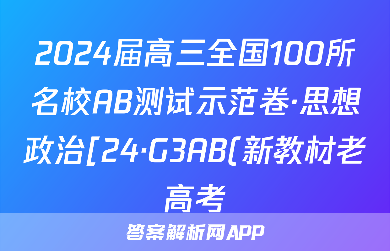 ">2024届高三全国100所名校AB测试示范卷·思想政治[24·G3AB(新教材老高考)·思想政治-R-必考-G DONG]七试题,目前2025-2026衡水金卷答案网已经汇总了2024届高三全国100所名校AB测试示范卷·思想政治[24·G3AB(新教材老高考)·思想政治-R-必考-G DONG]七试题的各科答案和试卷,获取更多{{papers_name}}答案解析,请在关注本站。