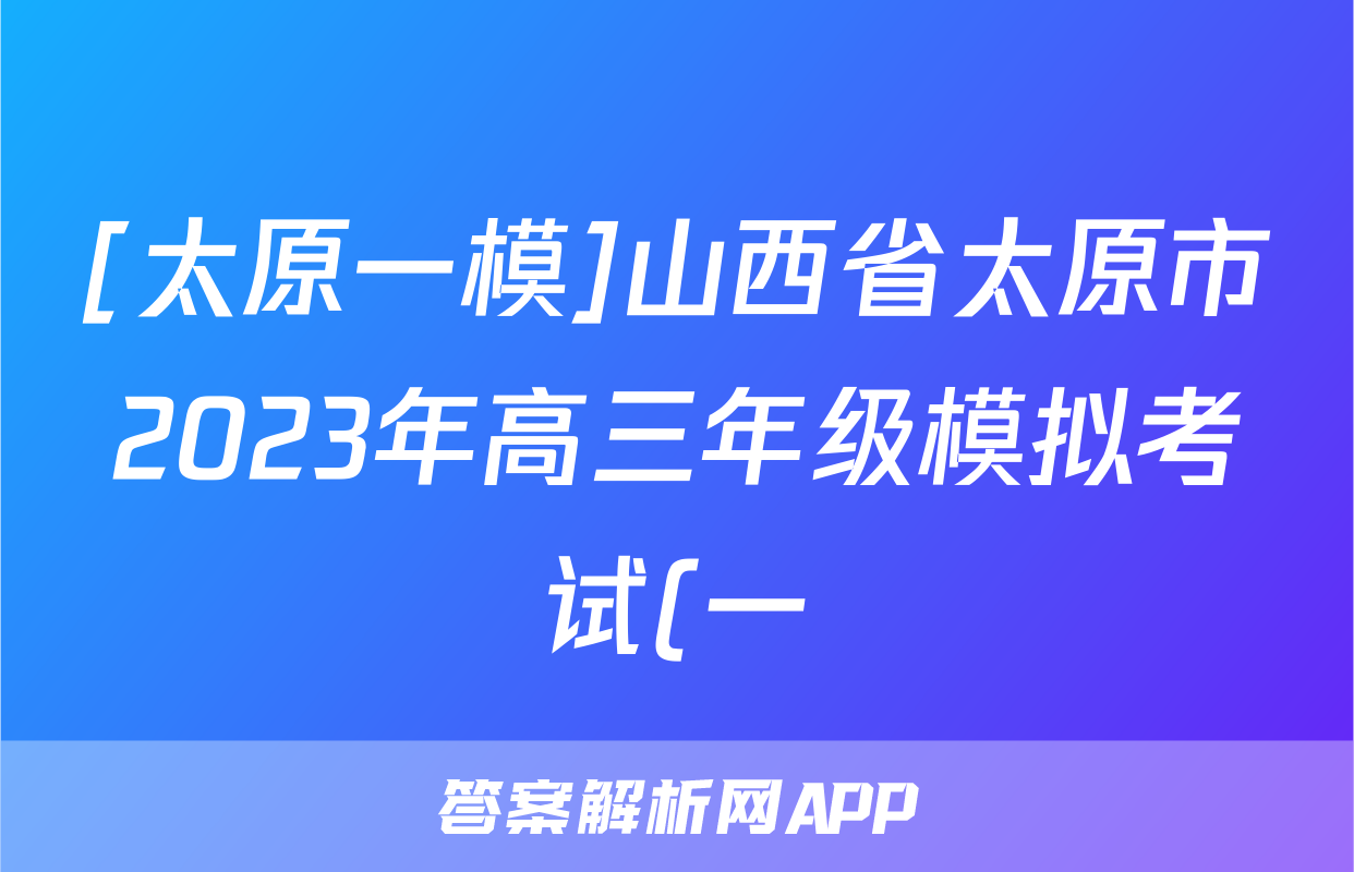 [太原一模]山西省太原市2023年高三年级模拟考试(一)语文答案,目前2025-2026衡水金卷答案网已经汇总了[太原一模]山西省太原市2023年高三年级模拟考试(一)语文答案的各科答案和试卷,获取更多{{papers_name}}答案解析,请在关注本站。