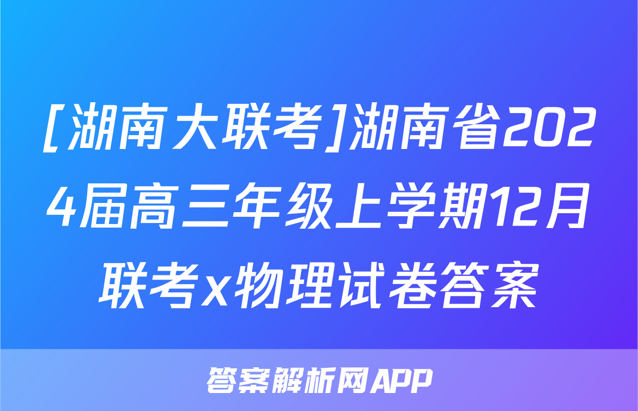 [湖南大联考]湖南省2024届高三年级上学期12月联考x物理试卷答案,目前2025-2026衡水金卷答案网已经汇总了[湖南大联考]湖南省2024届高三年级上学期12月联考x物理试卷答案的各科答案和试卷,获取更多{{papers_name}}答案解析,请在关注本站。