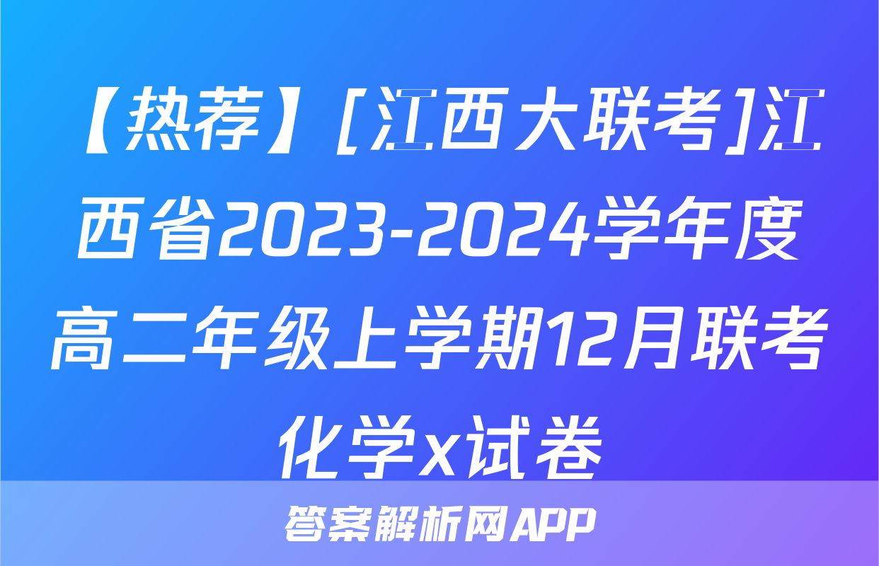 【热荐】[江西大联考]江西省2023-2024学年度高二年级上学期12月联考化学x试卷,目前2025-2026衡水金卷答案网已经汇总了【热荐】[江西大联考]江西省2023-2024学年度高二年级上学期12月联考化学x试卷的各科答案和试卷,获取更多{{papers_name}}答案解析,请在关注本站。