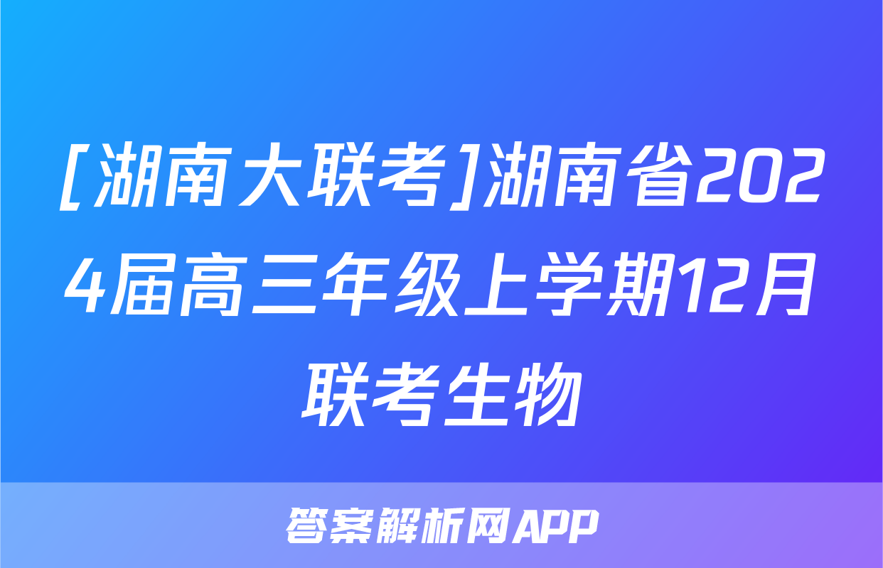 [湖南大联考]湖南省2024届高三年级上学期12月联考生物,目前2025-2026衡水金卷答案网已经汇总了[湖南大联考]湖南省2024届高三年级上学期12月联考生物的各科答案和试卷,获取更多{{papers_name}}答案解析,请在关注本站。