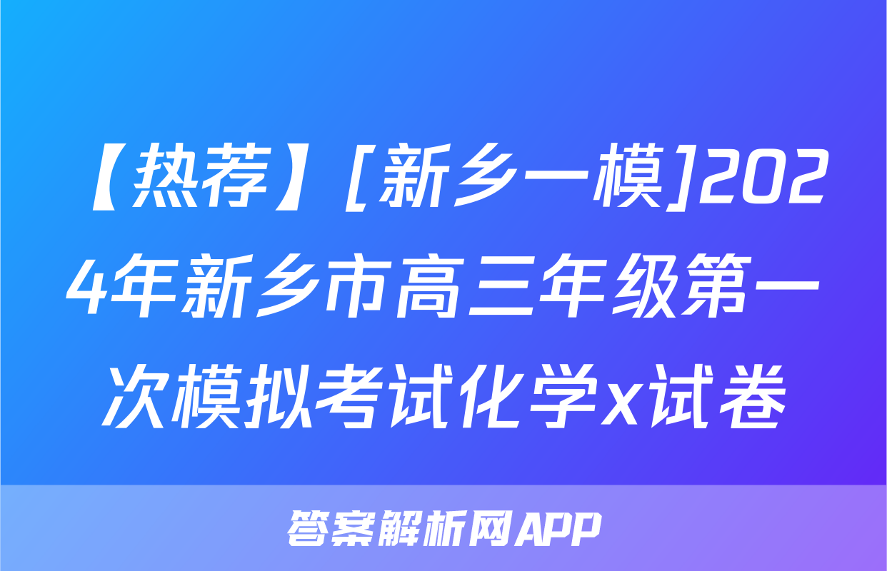 【热荐】[新乡一模]2024年新乡市高三年级第一次模拟考试化学x试卷,目前2025-2026衡水金卷答案网已经汇总了【热荐】[新乡一模]2024年新乡市高三年级第一次模拟考试化学x试卷的各科答案和试卷,获取更多{{papers_name}}答案解析,请在关注本站。