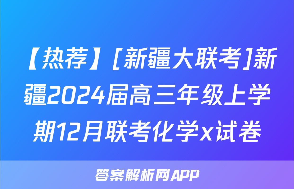 【热荐】[新疆大联考]新疆2024届高三年级上学期12月联考化学x试卷,目前2025-2026衡水金卷答案网已经汇总了【热荐】[新疆大联考]新疆2024届高三年级上学期12月联考化学x试卷的各科答案和试卷,获取更多{{papers_name}}答案解析,请在关注本站。