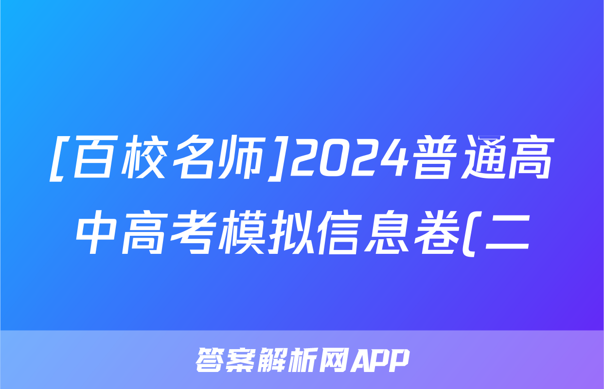 [百校名师]2024普通高中高考模拟信息卷(二)2英语X答案,目前2025-2026衡水金卷答案网已经汇总了[百校名师]2024普通高中高考模拟信息卷(二)2英语X答案的各科答案和试卷,获取更多{{papers_name}}答案解析,请在关注本站。