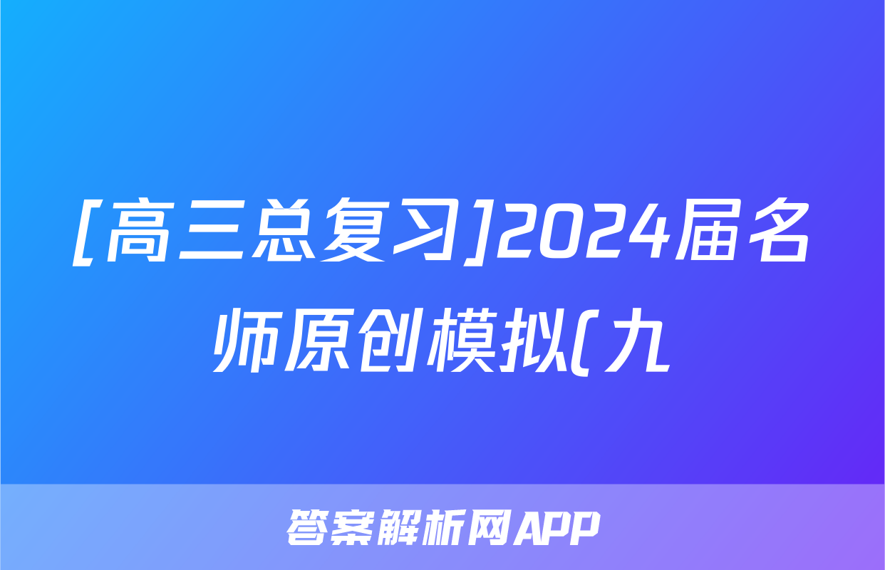 1、[高三总复]2024届名师原创模拟(九)9地理(ZS4)答案