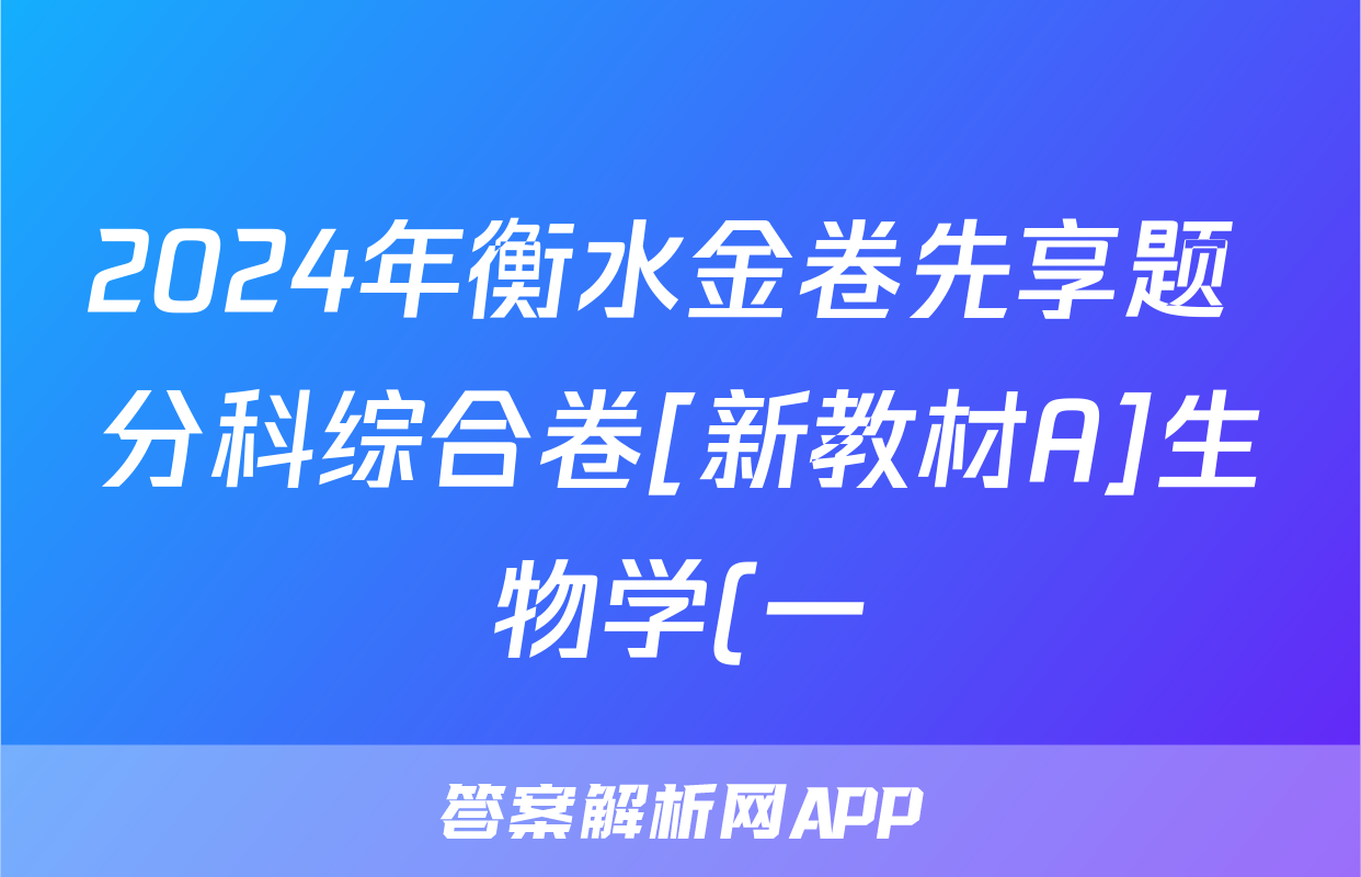 2024年衡水金卷先享题 分科综合卷[新教材A]生物学(一)1答案,目前2025-2026衡水金卷答案网已经汇总了2024年衡水金卷先享题 分科综合卷[新教材A]生物学(一)1答案的各科答案和试卷,获取更多{{papers_name}}答案解析,请在关注本站。