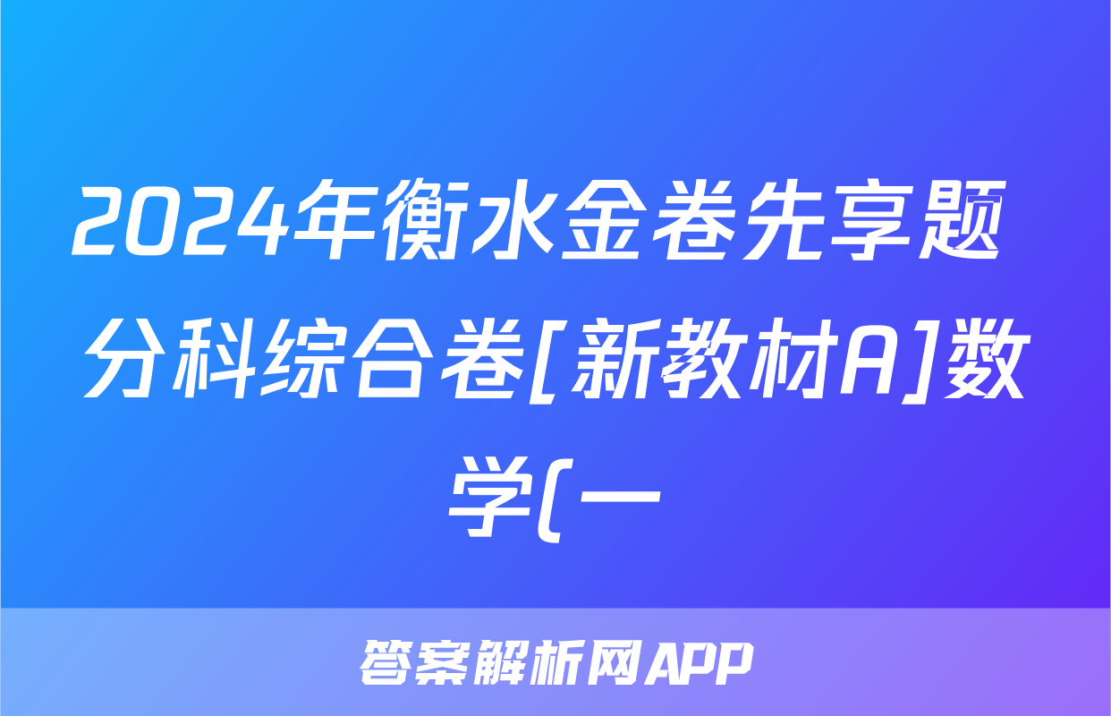 2024年衡水金卷先享题 分科综合卷[新教材A]数学(一)1试题,目前2025-2026衡水金卷答案网已经汇总了2024年衡水金卷先享题 分科综合卷[新教材A]数学(一)1试题的各科答案和试卷,获取更多{{papers_name}}答案解析,请在关注本站。