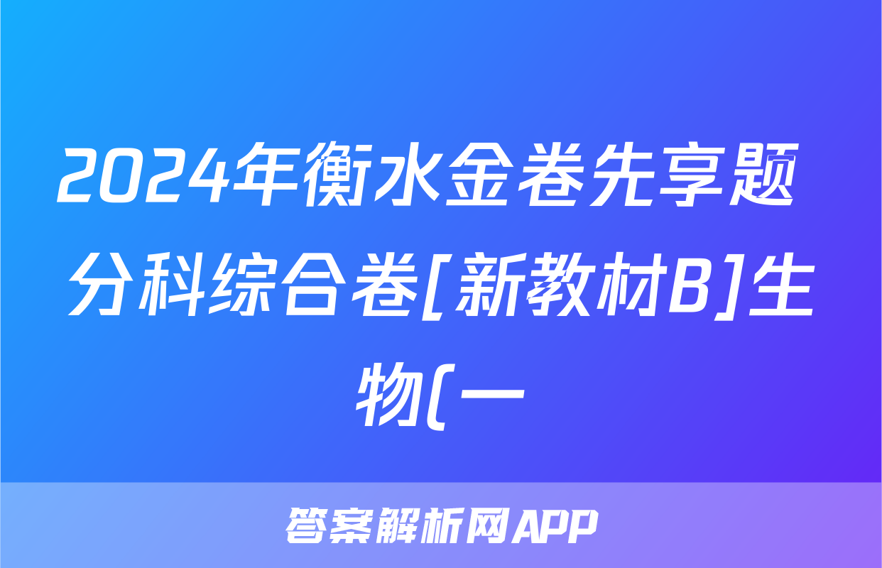 2024年衡水金卷先享题 分科综合卷[新教材B]生物(一)1答案,目前2025-2026衡水金卷答案网已经汇总了2024年衡水金卷先享题 分科综合卷[新教材B]生物(一)1答案的各科答案和试卷,获取更多{{papers_name}}答案解析,请在关注本站。