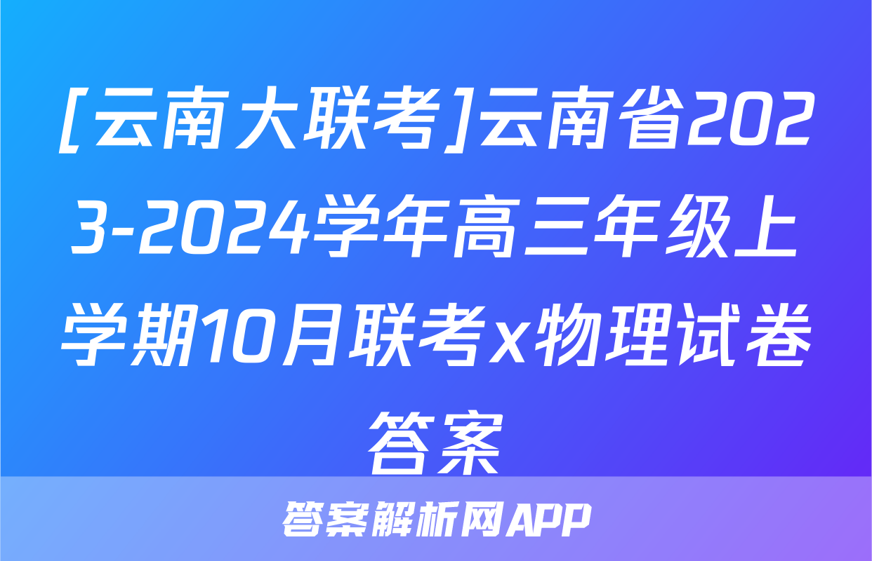 [云南大联考]云南省2023-2024学年高三年级上学期10月联考x物理试卷答案,目前2025-2026衡水金卷答案网已经汇总了[云南大联考]云南省2023-2024学年高三年级上学期10月联考x物理试卷答案的各科答案和试卷,获取更多{{papers_name}}答案解析,请在关注本站。
