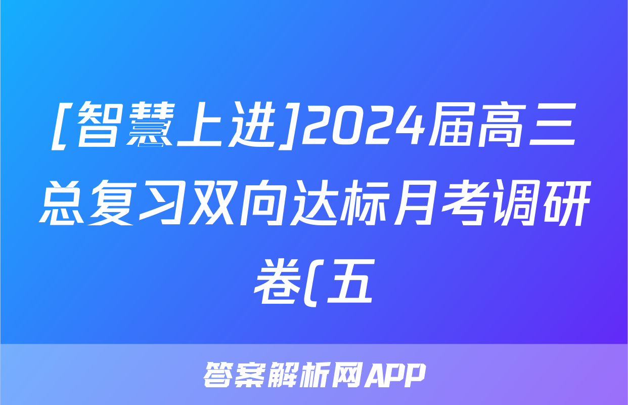 [智慧上进]2024届高三总复习双向达标月考调研卷(五)5化学·ⅠⅠ卷答案,目前2025-2026衡水金卷答案网已经汇总了[智慧上进]2024届高三总复习双向达标月考调研卷(五)5化学·ⅠⅠ卷答案的各科答案和试卷,获取更多{{papers_name}}答案解析,请在关注本站。