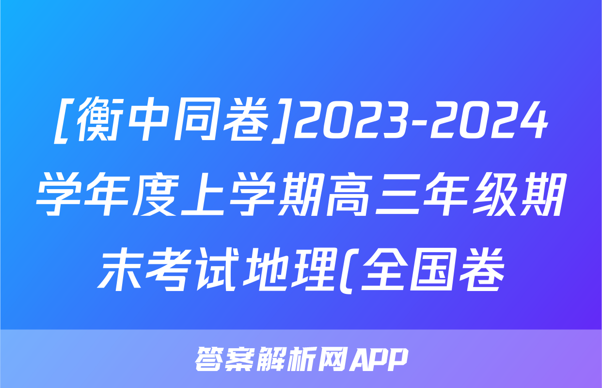 [衡中同卷]2023-2024学年度上学期高三年级期末考试地理(全国卷)试题,目前2025-2026衡水金卷答案网已经汇总了[衡中同卷]2023-2024学年度上学期高三年级期末考试地理(全国卷)试题的各科答案和试卷,获取更多{{papers_name}}答案解析,请在关注本站。
