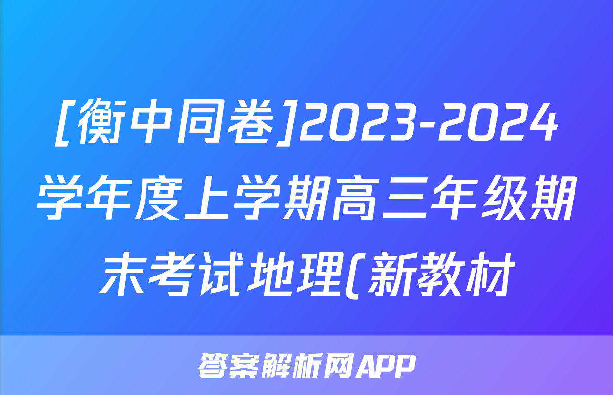 [衡中同卷]2023-2024学年度上学期高三年级期末考试地理(新教材)答案,目前2025-2026衡水金卷答案网已经汇总了[衡中同卷]2023-2024学年度上学期高三年级期末考试地理(新教材)答案的各科答案和试卷,获取更多{{papers_name}}答案解析,请在关注本站。