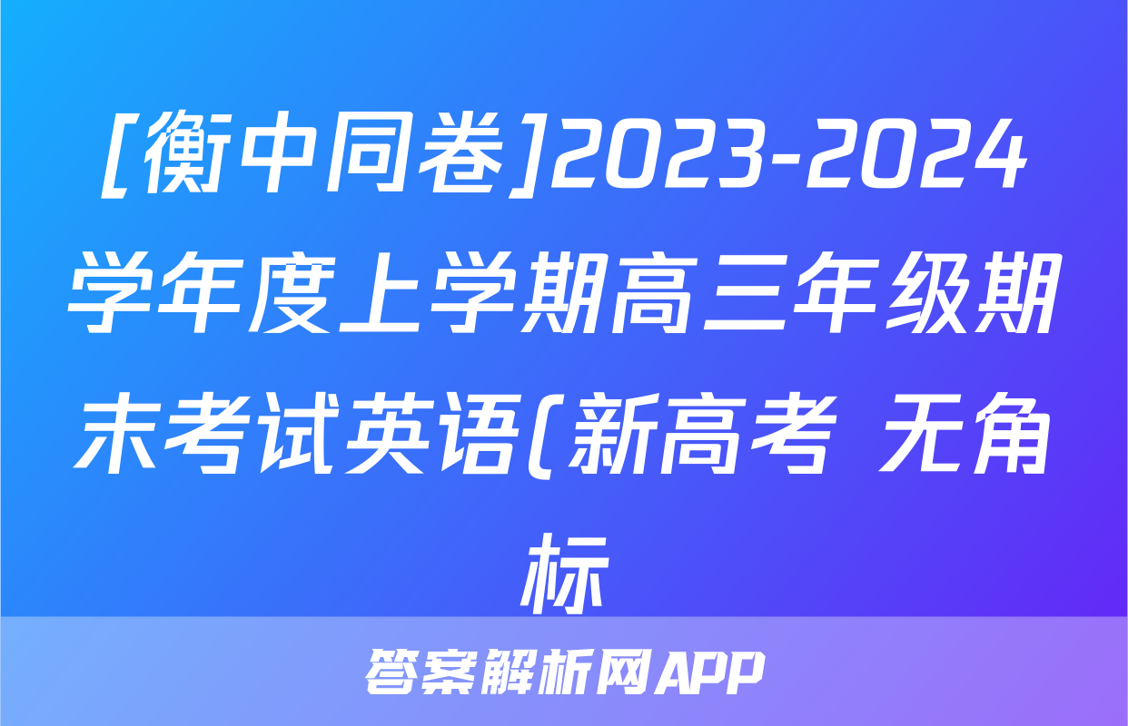 [衡中同卷]2023-2024学年度上学期高三年级期末考试英语(新高考 无角标)答案,目前2025-2026衡水金卷答案网已经汇总了[衡中同卷]2023-2024学年度上学期高三年级期末考试英语(新高考 无角标)答案的各科答案和试卷,获取更多{{papers_name}}答案解析,请在关注本站。