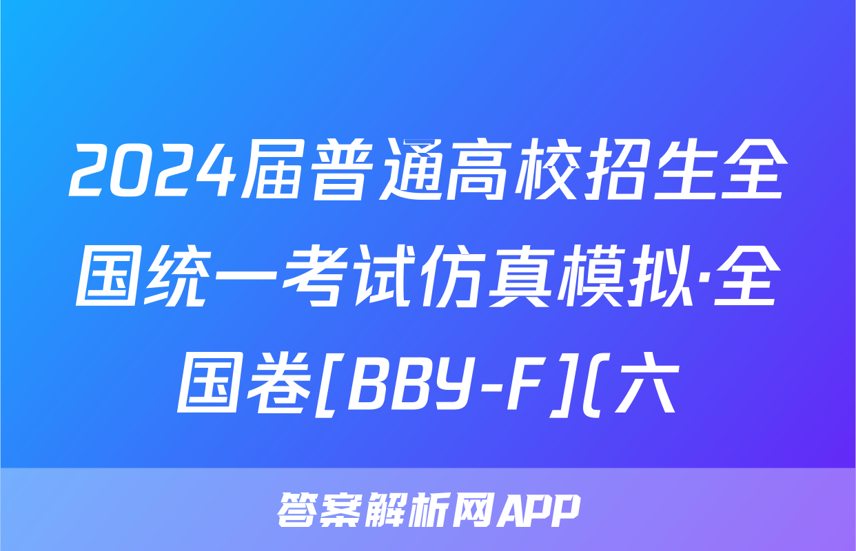 2024届普通高校招生全国统一考试仿真模拟·全国卷[BBY-F](六)6文科数学答案,目前2025-2026衡水金卷答案网已经汇总了2024届普通高校招生全国统一考试仿真模拟·全国卷[BBY-F](六)6文科数学答案的各科答案和试卷,获取更多{{papers_name}}答案解析,请在关注本站。