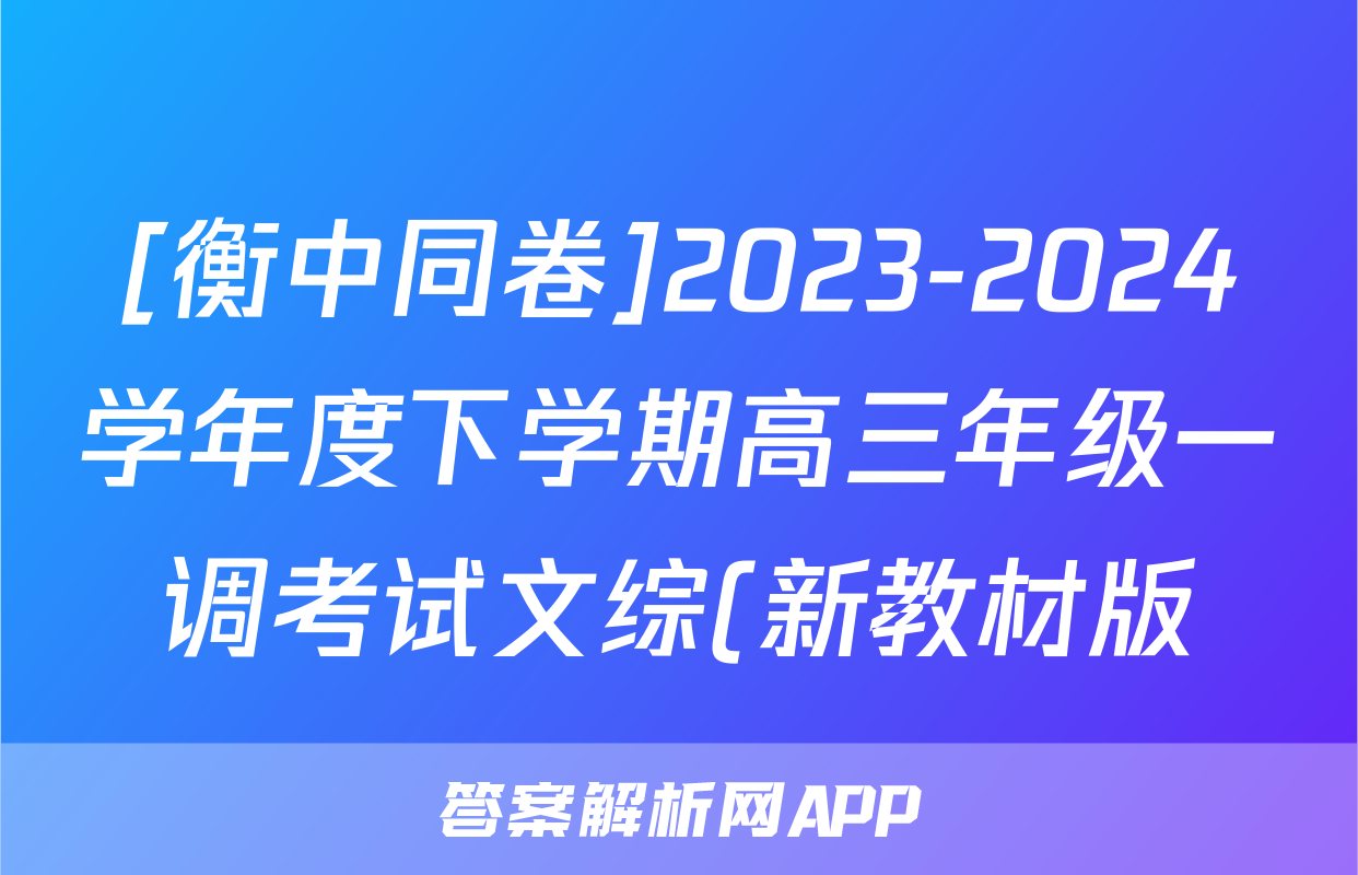 [衡中同卷]2023-2024学年度下学期高三年级一调考试文综(新教材版)答案,目前2025-2026衡水金卷答案网已经汇总了[衡中同卷]2023-2024学年度下学期高三年级一调考试文综(新教材版)答案的各科答案和试卷,获取更多{{papers_name}}答案解析,请在关注本站。