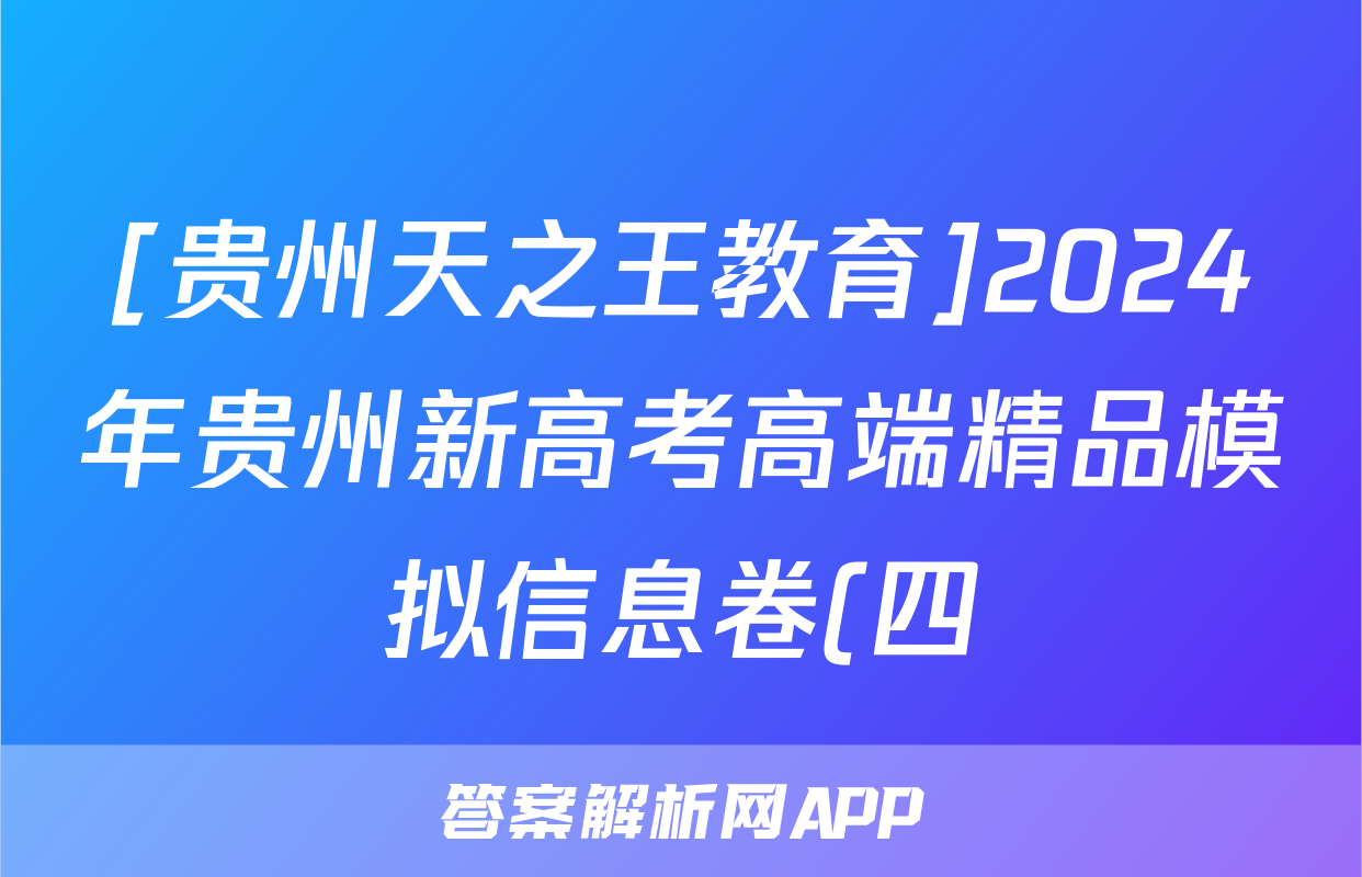 [贵州天之王教育]2024年贵州新高考高端精品模拟信息卷(四)4数学答案,目前2025-2026衡水金卷答案网已经汇总了[贵州天之王教育]2024年贵州新高考高端精品模拟信息卷(四)4数学答案的各科答案和试卷,获取更多{{papers_name}}答案解析,请在关注本站。