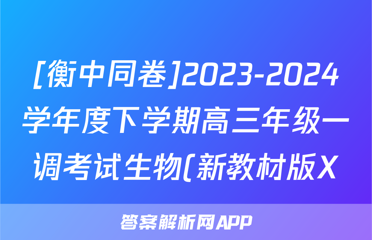 [衡中同卷]2023-2024学年度下学期高三年级一调考试生物(新教材版X)答案,目前2025-2026衡水金卷答案网已经汇总了[衡中同卷]2023-2024学年度下学期高三年级一调考试生物(新教材版X)答案的各科答案和试卷,获取更多{{papers_name}}答案解析,请在关注本站。