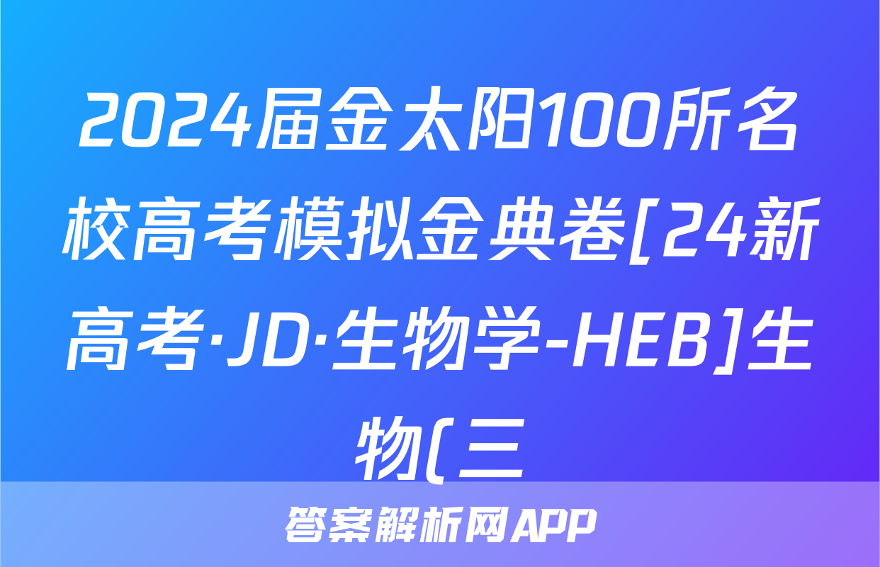 2024届金太阳100所名校高考模拟金典卷[24新高考·JD·生物学-HEB]生物(三)3答案,目前2025-2026衡水金卷答案网已经汇总了2024届金太阳100所名校高考模拟金典卷[24新高考·JD·生物学-HEB]生物(三)3答案的各科答案和试卷,获取更多{{papers_name}}答案解析,请在关注本站。
