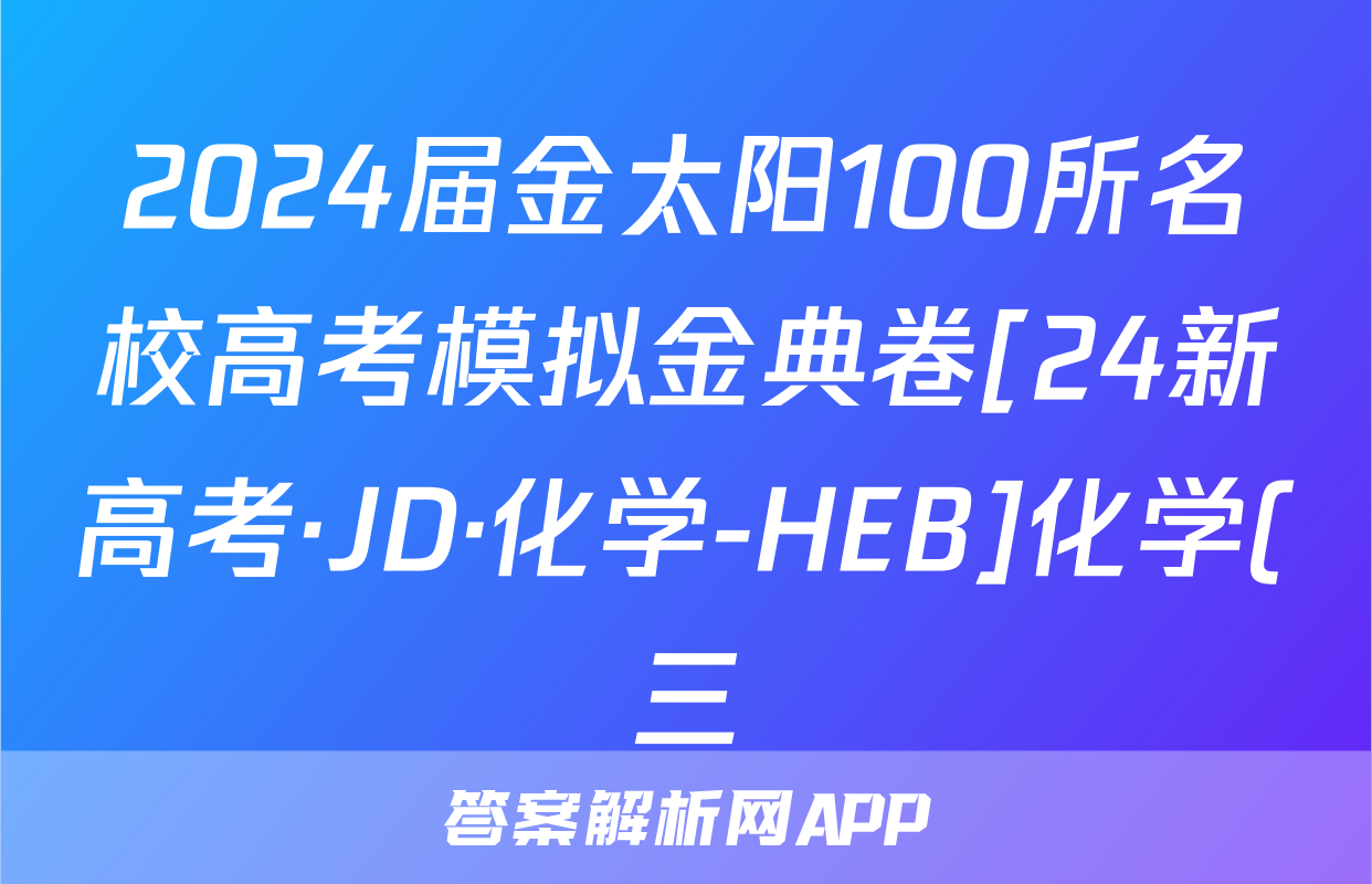 2024届金太阳100所名校高考模拟金典卷[24新高考·JD·化学-HEB]化学(三)3答案,目前2025-2026衡水金卷答案网已经汇总了2024届金太阳100所名校高考模拟金典卷[24新高考·JD·化学-HEB]化学(三)3答案的各科答案和试卷,获取更多{{papers_name}}答案解析,请在关注本站。