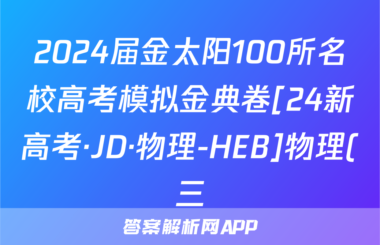 2024届金太阳100所名校高考模拟金典卷[24新高考·JD·物理-HEB]物理(三)3答案,目前2025-2026衡水金卷答案网已经汇总了2024届金太阳100所名校高考模拟金典卷[24新高考·JD·物理-HEB]物理(三)3答案的各科答案和试卷,获取更多{{papers_name}}答案解析,请在关注本站。