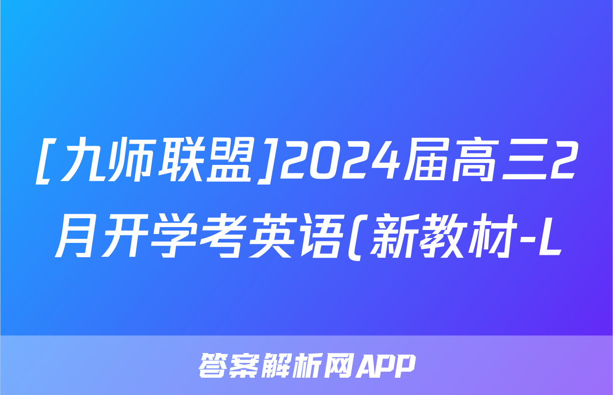 [九师联盟]2024届高三2月开学考英语(新教材-L)答案,目前2025-2026衡水金卷答案网已经汇总了[九师联盟]2024届高三2月开学考英语(新教材-L)答案的各科答案和试卷,获取更多{{papers_name}}答案解析,请在关注本站。