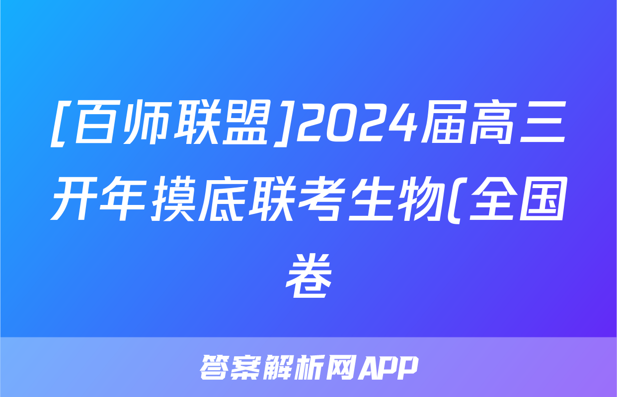 [百师联盟]2024届高三开年摸底联考生物(全国卷)试题,目前2025-2026衡水金卷答案网已经汇总了[百师联盟]2024届高三开年摸底联考生物(全国卷)试题的各科答案和试卷,获取更多{{papers_name}}答案解析,请在关注本站。