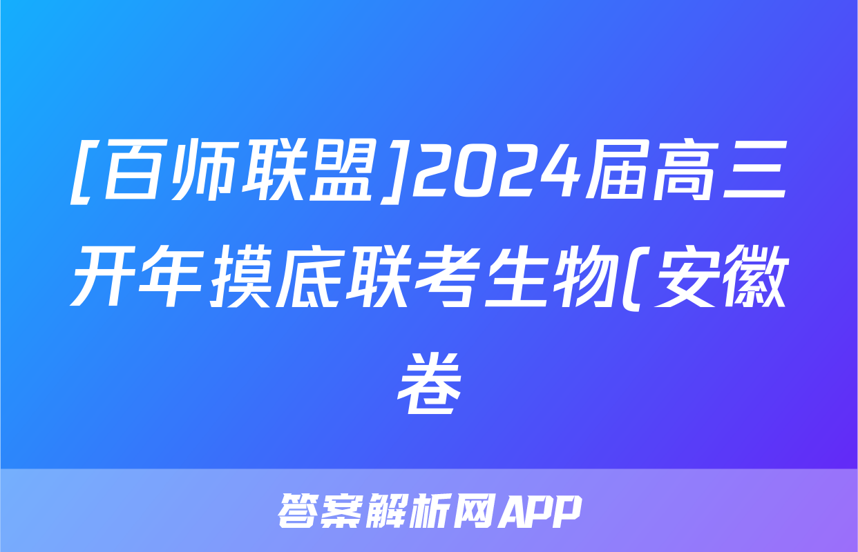 [百师联盟]2024届高三开年摸底联考生物(安徽卷)试题,目前2025-2026衡水金卷答案网已经汇总了[百师联盟]2024届高三开年摸底联考生物(安徽卷)试题的各科答案和试卷,获取更多{{papers_name}}答案解析,请在关注本站。
