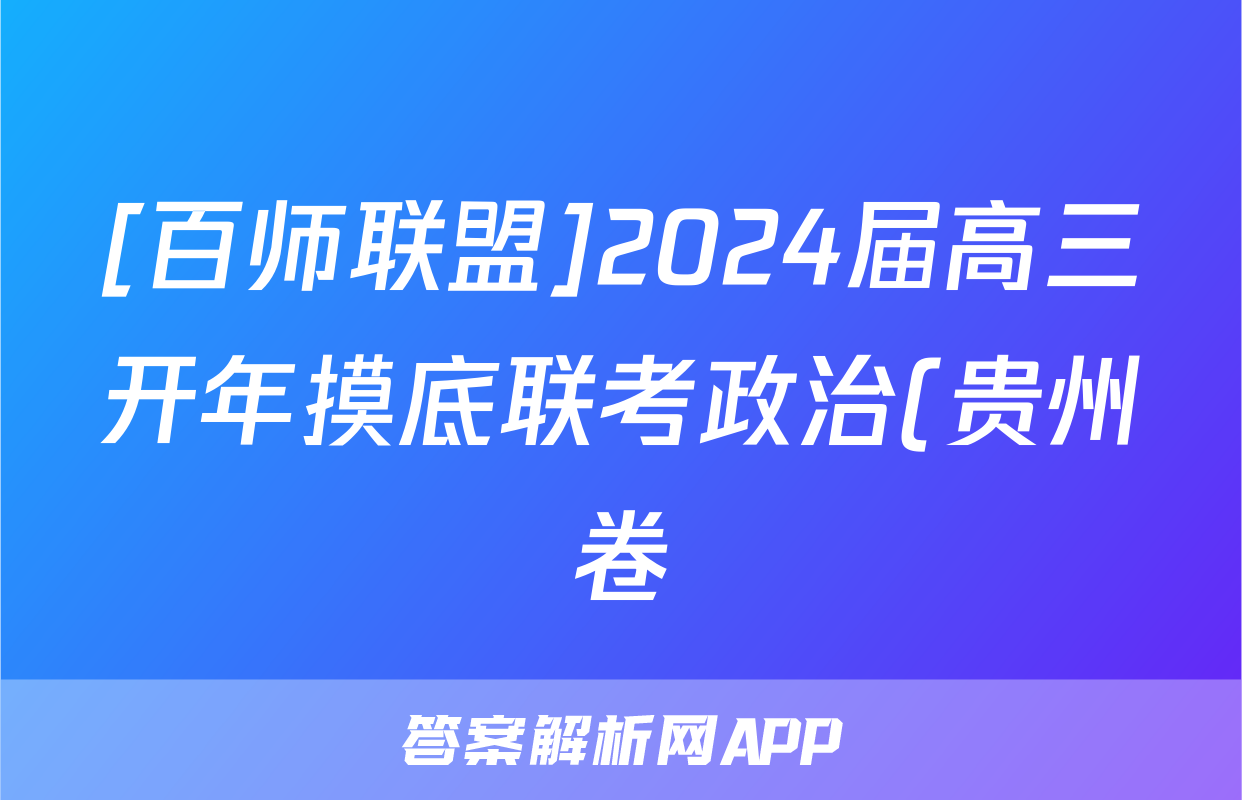 [百师联盟]2024届高三开年摸底联考政治(贵州卷)答案,目前2025-2026衡水金卷答案网已经汇总了[百师联盟]2024届高三开年摸底联考政治(贵州卷)答案的各科答案和试卷,获取更多{{papers_name}}答案解析,请在关注本站。