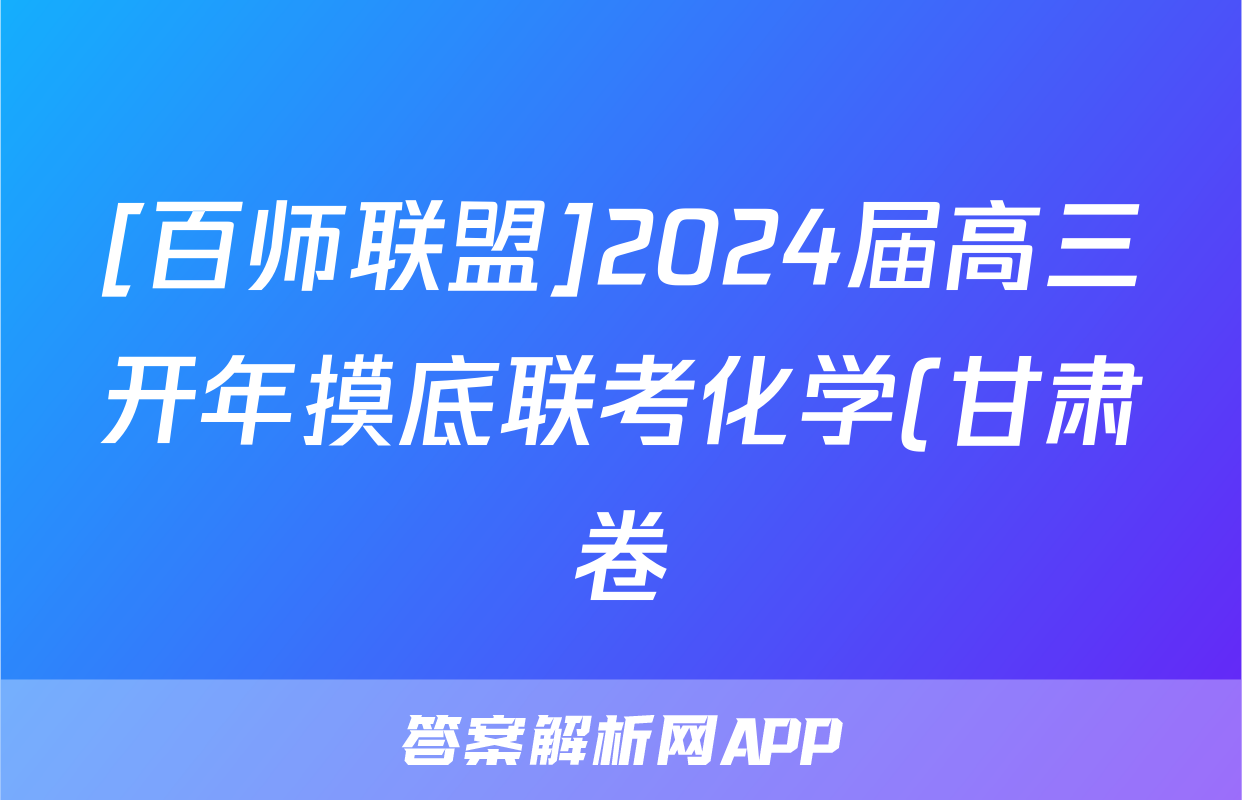 [百师联盟]2024届高三开年摸底联考化学(甘肃卷)试题,目前2025-2026衡水金卷答案网已经汇总了[百师联盟]2024届高三开年摸底联考化学(甘肃卷)试题的各科答案和试卷,获取更多{{papers_name}}答案解析,请在关注本站。