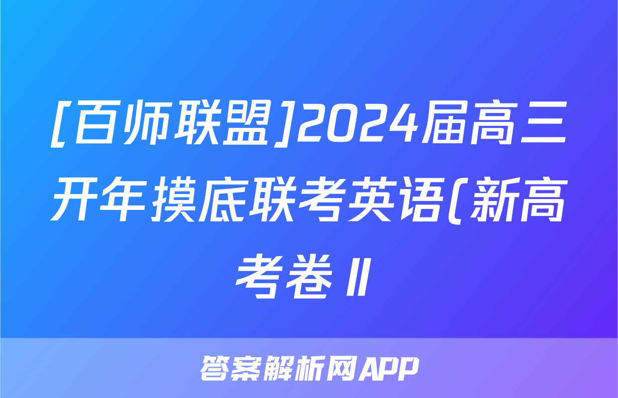 [百师联盟]2024届高三开年摸底联考英语(新高考卷Ⅱ)试题,目前2025-2026衡水金卷答案网已经汇总了[百师联盟]2024届高三开年摸底联考英语(新高考卷Ⅱ)试题的各科答案和试卷,获取更多{{papers_name}}答案解析,请在关注本站。