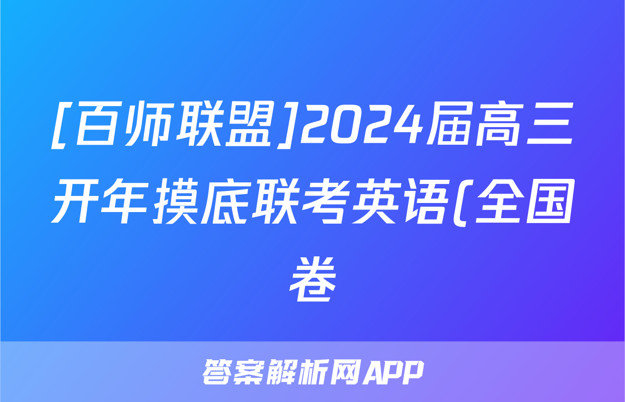 [百师联盟]2024届高三开年摸底联考英语(全国卷)试题,目前2025-2026衡水金卷答案网已经汇总了[百师联盟]2024届高三开年摸底联考英语(全国卷)试题的各科答案和试卷,获取更多{{papers_name}}答案解析,请在关注本站。