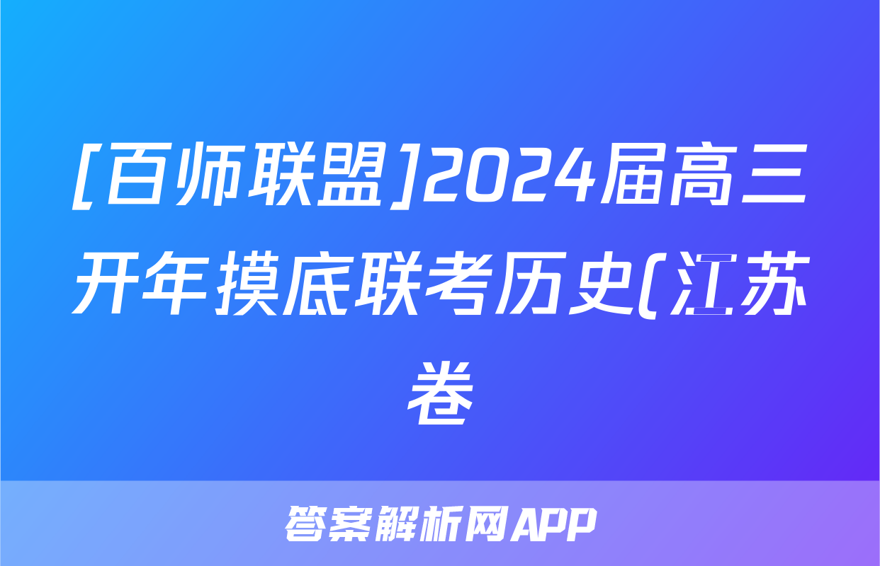 [百师联盟]2024届高三开年摸底联考历史(江苏卷)答案,目前2025-2026衡水金卷答案网已经汇总了[百师联盟]2024届高三开年摸底联考历史(江苏卷)答案的各科答案和试卷,获取更多{{papers_name}}答案解析,请在关注本站。