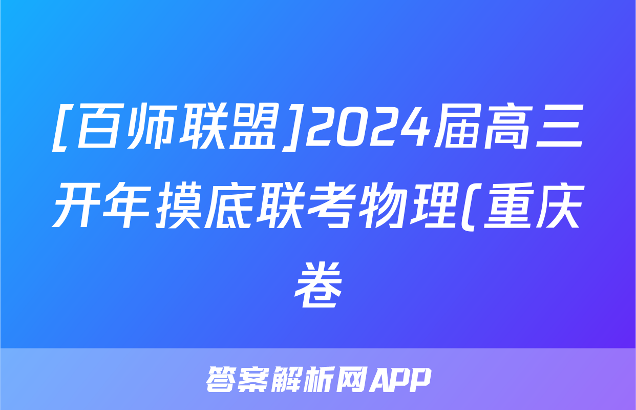 [百师联盟]2024届高三开年摸底联考物理(重庆卷)试题,目前2025-2026衡水金卷答案网已经汇总了[百师联盟]2024届高三开年摸底联考物理(重庆卷)试题的各科答案和试卷,获取更多{{papers_name}}答案解析,请在关注本站。