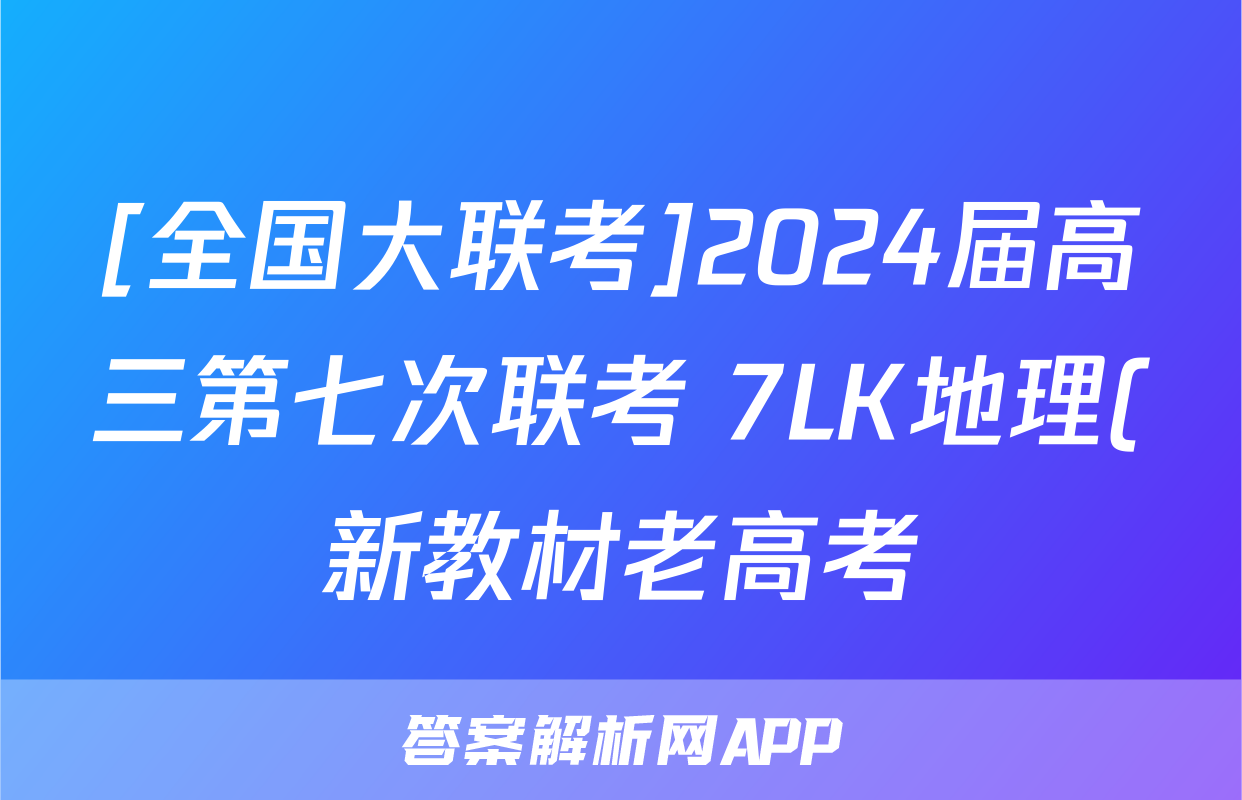 [全国大联考]2024届高三第七次联考 7LK地理(新教材老高考)答案,目前2025-2026衡水金卷答案网已经汇总了[全国大联考]2024届高三第七次联考 7LK地理(新教材老高考)答案的各科答案和试卷,获取更多{{papers_name}}答案解析,请在关注本站。