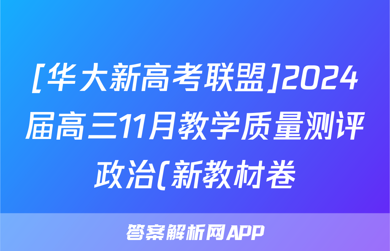 [华大新高考联盟]2024届高三11月教学质量测评政治(新教材卷)试题,目前2025-2026衡水金卷答案网已经汇总了[华大新高考联盟]2024届高三11月教学质量测评政治(新教材卷)试题的各科答案和试卷,获取更多{{papers_name}}答案解析,请在关注本站。