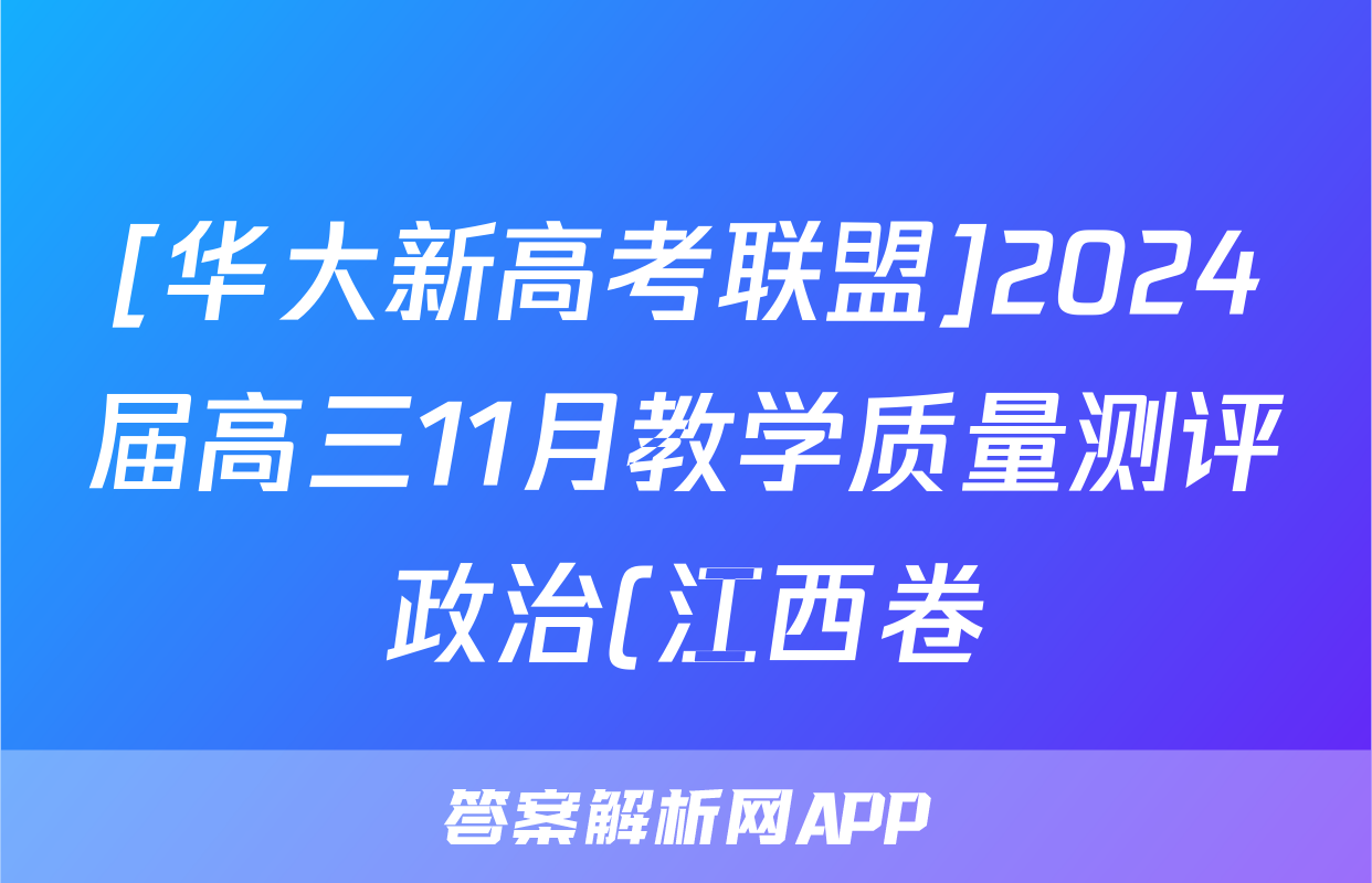 [华大新高考联盟]2024届高三11月教学质量测评政治(江西卷)试题,目前2025-2026衡水金卷答案网已经汇总了[华大新高考联盟]2024届高三11月教学质量测评政治(江西卷)试题的各科答案和试卷,获取更多{{papers_name}}答案解析,请在关注本站。