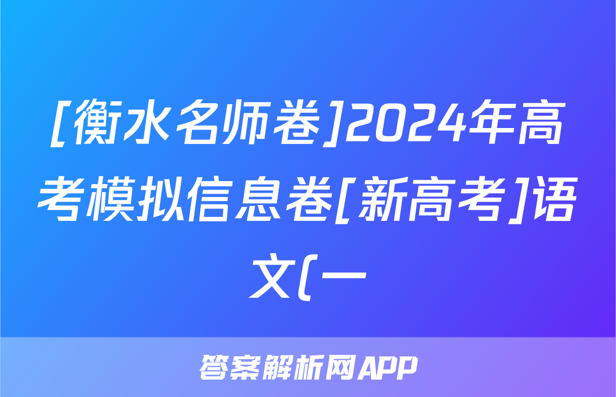 [衡水名师卷]2024年高考模拟信息卷[新高考]语文(一)1答案,目前2025-2026衡水金卷答案网已经汇总了[衡水名师卷]2024年高考模拟信息卷[新高考]语文(一)1答案的各科答案和试卷,获取更多{{papers_name}}答案解析,请在关注本站。