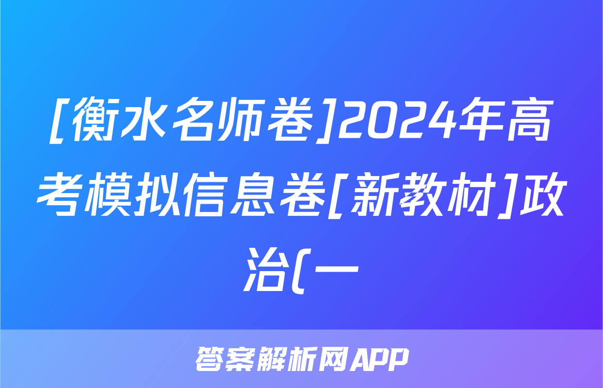 [衡水名师卷]2024年高考模拟信息卷[新教材]政治(一)1试题,目前2025-2026衡水金卷答案网已经汇总了[衡水名师卷]2024年高考模拟信息卷[新教材]政治(一)1试题的各科答案和试卷,获取更多{{papers_name}}答案解析,请在关注本站。