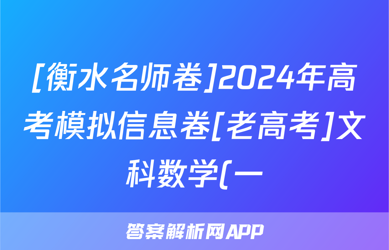 [衡水名师卷]2024年高考模拟信息卷[老高考]文科数学(一)1试题,目前2025-2026衡水金卷答案网已经汇总了[衡水名师卷]2024年高考模拟信息卷[老高考]文科数学(一)1试题的各科答案和试卷,获取更多{{papers_name}}答案解析,请在关注本站。