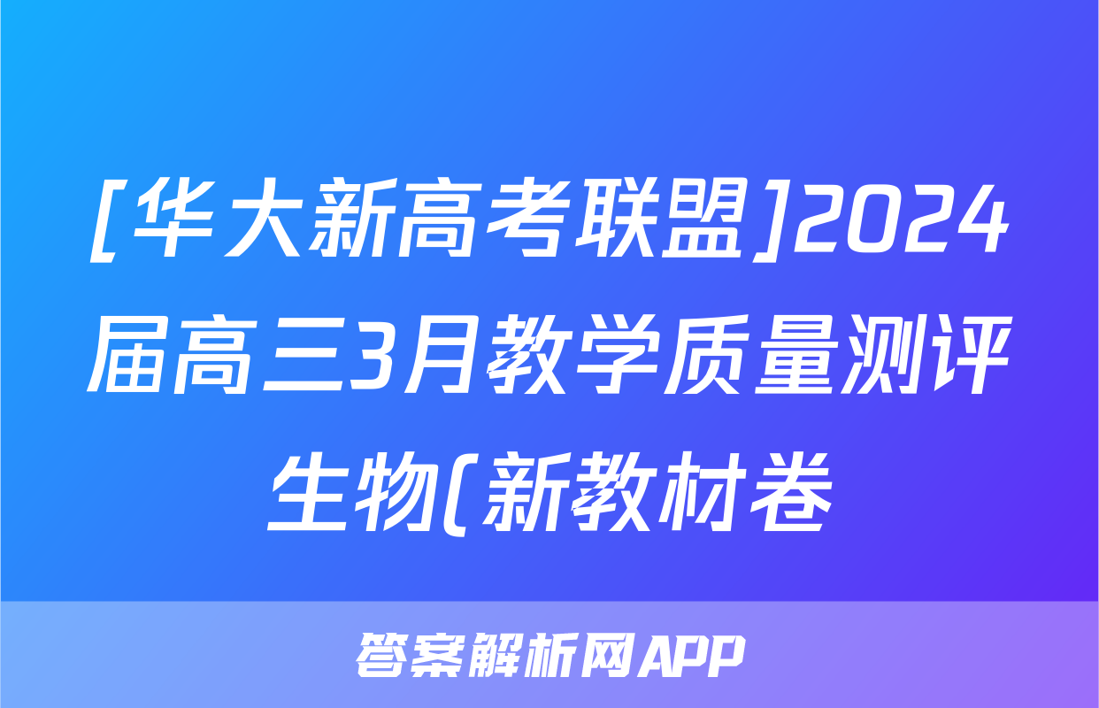 [华大新高考联盟]2024届高三3月教学质量测评生物(新教材卷)答案,目前2025-2026衡水金卷答案网已经汇总了[华大新高考联盟]2024届高三3月教学质量测评生物(新教材卷)答案的各科答案和试卷,获取更多{{papers_name}}答案解析,请在关注本站。