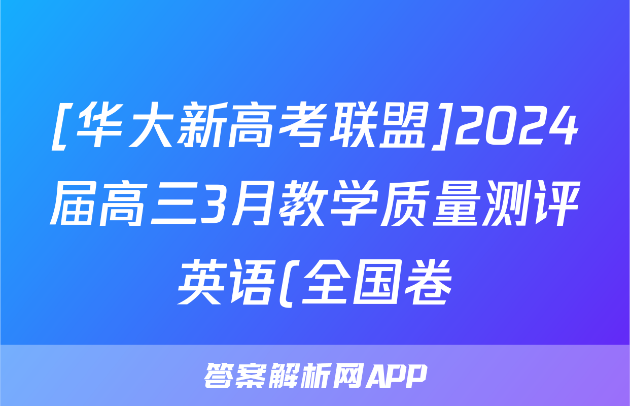[华大新高考联盟]2024届高三3月教学质量测评英语(全国卷)答案,目前2025-2026衡水金卷答案网已经汇总了[华大新高考联盟]2024届高三3月教学质量测评英语(全国卷)答案的各科答案和试卷,获取更多{{papers_name}}答案解析,请在关注本站。