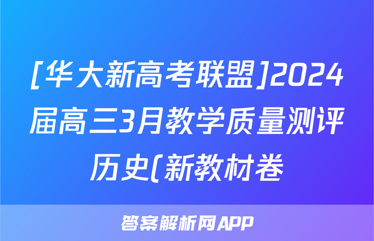 [华大新高考联盟]2024届高三3月教学质量测评历史(新教材卷)答案,目前2025-2026衡水金卷答案网已经汇总了[华大新高考联盟]2024届高三3月教学质量测评历史(新教材卷)答案的各科答案和试卷,获取更多{{papers_name}}答案解析,请在关注本站。