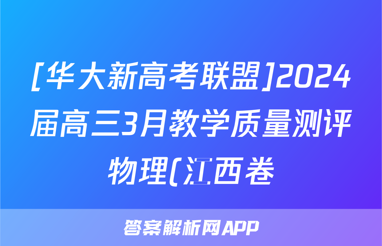 [华大新高考联盟]2024届高三3月教学质量测评物理(江西卷)试题,目前2025-2026衡水金卷答案网已经汇总了[华大新高考联盟]2024届高三3月教学质量测评物理(江西卷)试题的各科答案和试卷,获取更多{{papers_name}}答案解析,请在关注本站。