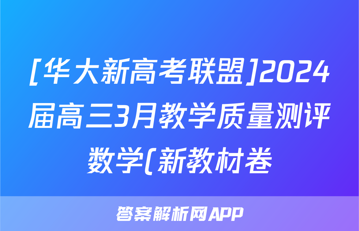 [华大新高考联盟]2024届高三3月教学质量测评数学(新教材卷)试题,目前2025-2026衡水金卷答案网已经汇总了[华大新高考联盟]2024届高三3月教学质量测评数学(新教材卷)试题的各科答案和试卷,获取更多{{papers_name}}答案解析,请在关注本站。