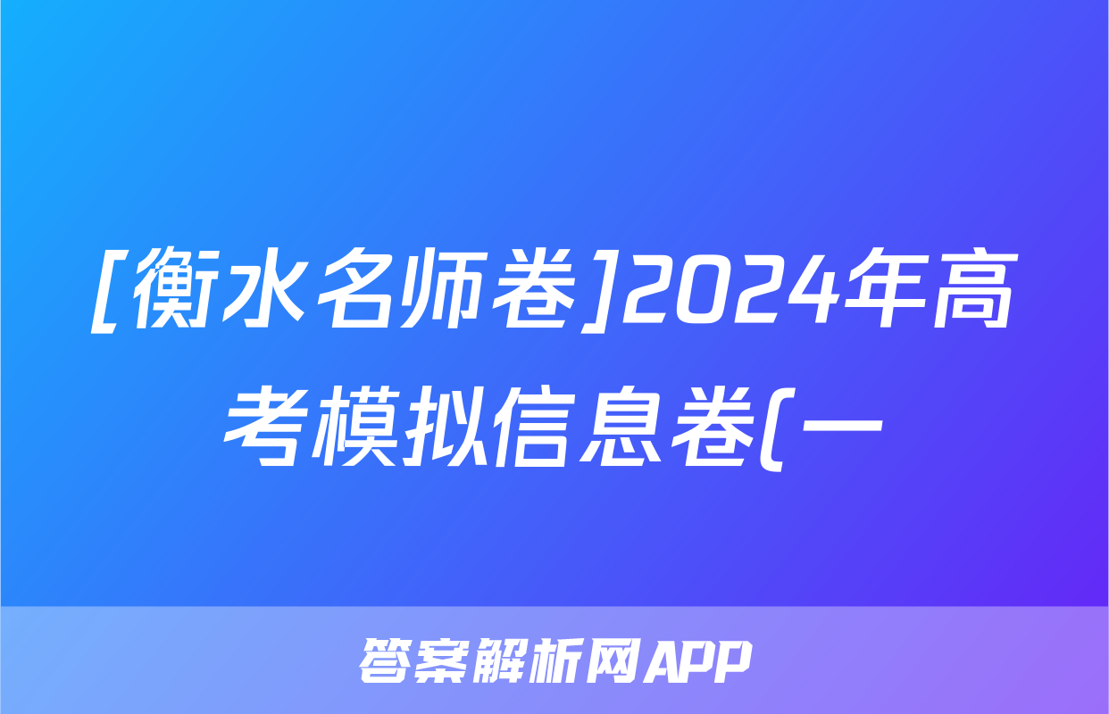 [衡水名师卷]2024年高考模拟信息卷(一)1生物(新教材)试题,目前2025-2026衡水金卷答案网已经汇总了[衡水名师卷]2024年高考模拟信息卷(一)1生物(新教材)试题的各科答案和试卷,获取更多{{papers_name}}答案解析,请在关注本站。