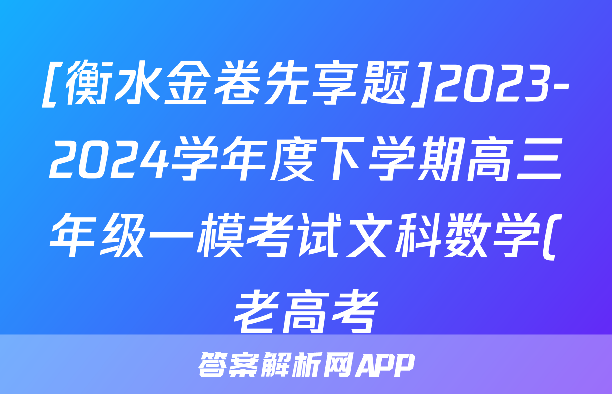 [衡水金卷先享题]2023-2024学年度下学期高三年级一模考试文科数学(老高考)试题,目前2025-2026衡水金卷答案网已经汇总了[衡水金卷先享题]2023-2024学年度下学期高三年级一模考试文科数学(老高考)试题的各科答案和试卷,获取更多{{papers_name}}答案解析,请在关注本站。