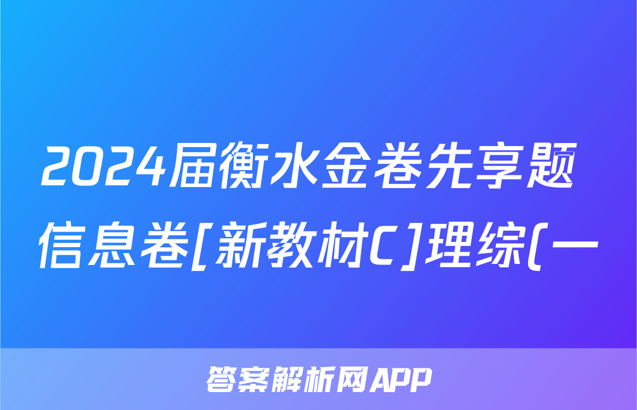 2024届衡水金卷先享题 信息卷[新教材C]理综(一)1试题,目前2025-2026衡水金卷答案网已经汇总了2024届衡水金卷先享题 信息卷[新教材C]理综(一)1试题的各科答案和试卷,获取更多{{papers_name}}答案解析,请在关注本站。