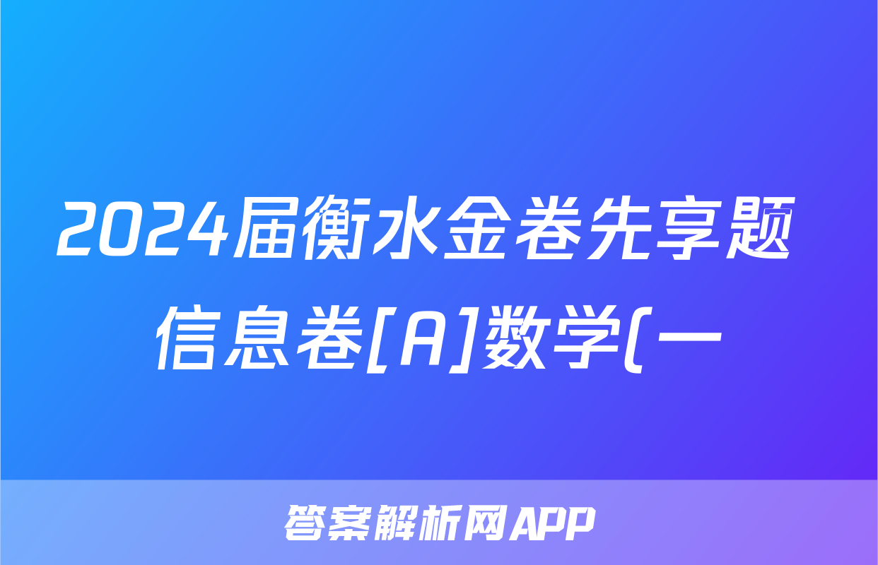 2024届衡水金卷先享题 信息卷[A]数学(一)1试题,目前2025-2026衡水金卷答案网已经汇总了2024届衡水金卷先享题 信息卷[A]数学(一)1试题的各科答案和试卷,获取更多{{papers_name}}答案解析,请在关注本站。